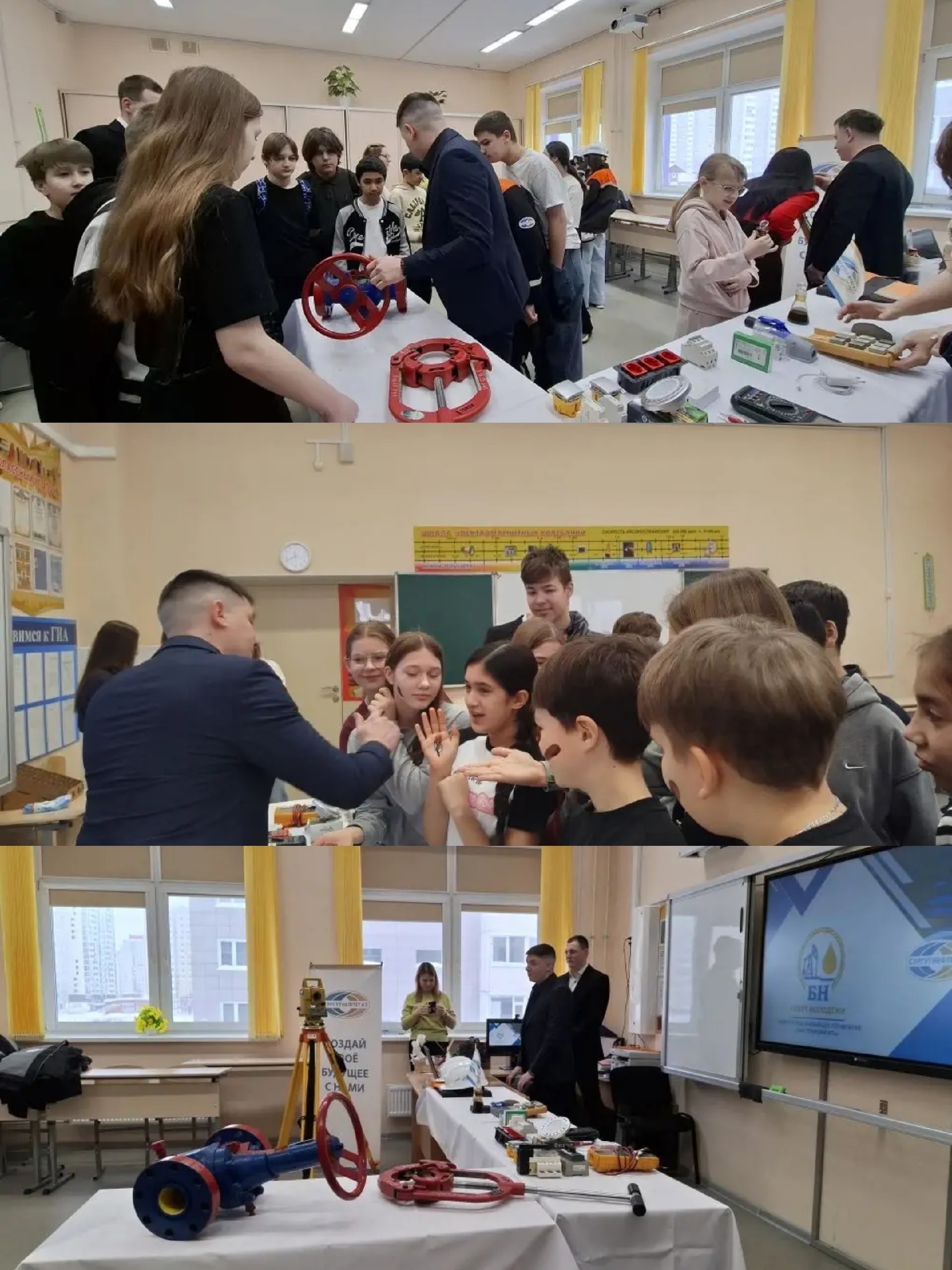 Учителя-предметники школы (Ключникова Л.М., Остроумова О.В., Огородникова Ю.В., Богинская М.А., Панфилова А.В., Архиреева П.А., Драчев В.И., Мельникова А.В., Крыжановская Т.А., Зозуля О.В.), специалисты психолого-педагогической службы (Волосникова И.Р., Шаповалова Т.Т., Шевченко Е.А., Гостева Т.А., Малинина Ю.А.) и представители наших социальных партнеров: НГДУ «Быстринскнефть», УМВД России по городу Сургуту и БУ «Сургутский государственный педагогический университет» порадовали мастер-классами, где можно было углубиться в детали профессии и даже попробовать свои силы в различных задачах. Такие активные форматы делают процесс познания более увлекательным и запоминающимся.
